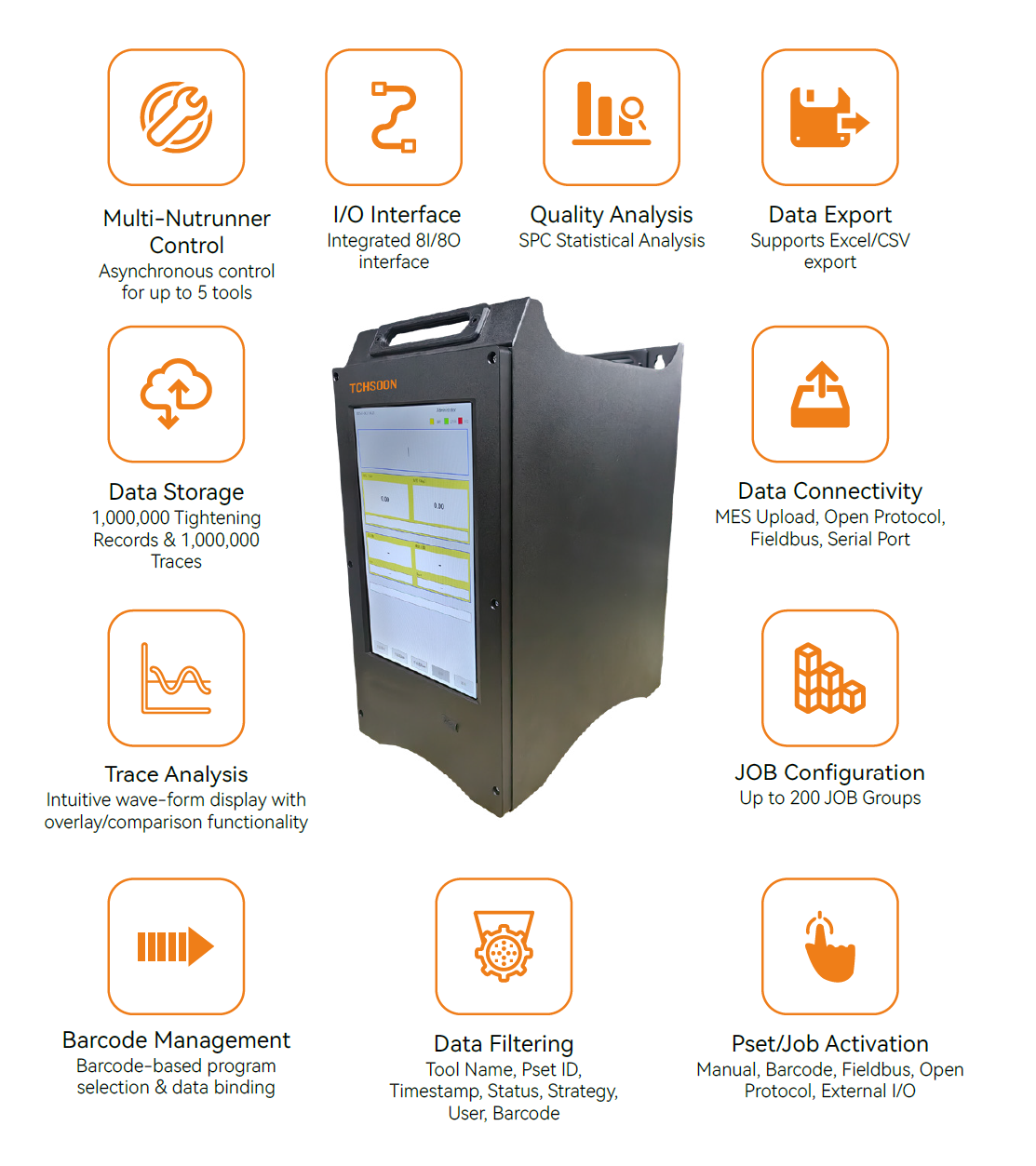 Seamlessly compatible with Open Protocol, mainstream databases (SQL/Oracle), and various fieldbuses.